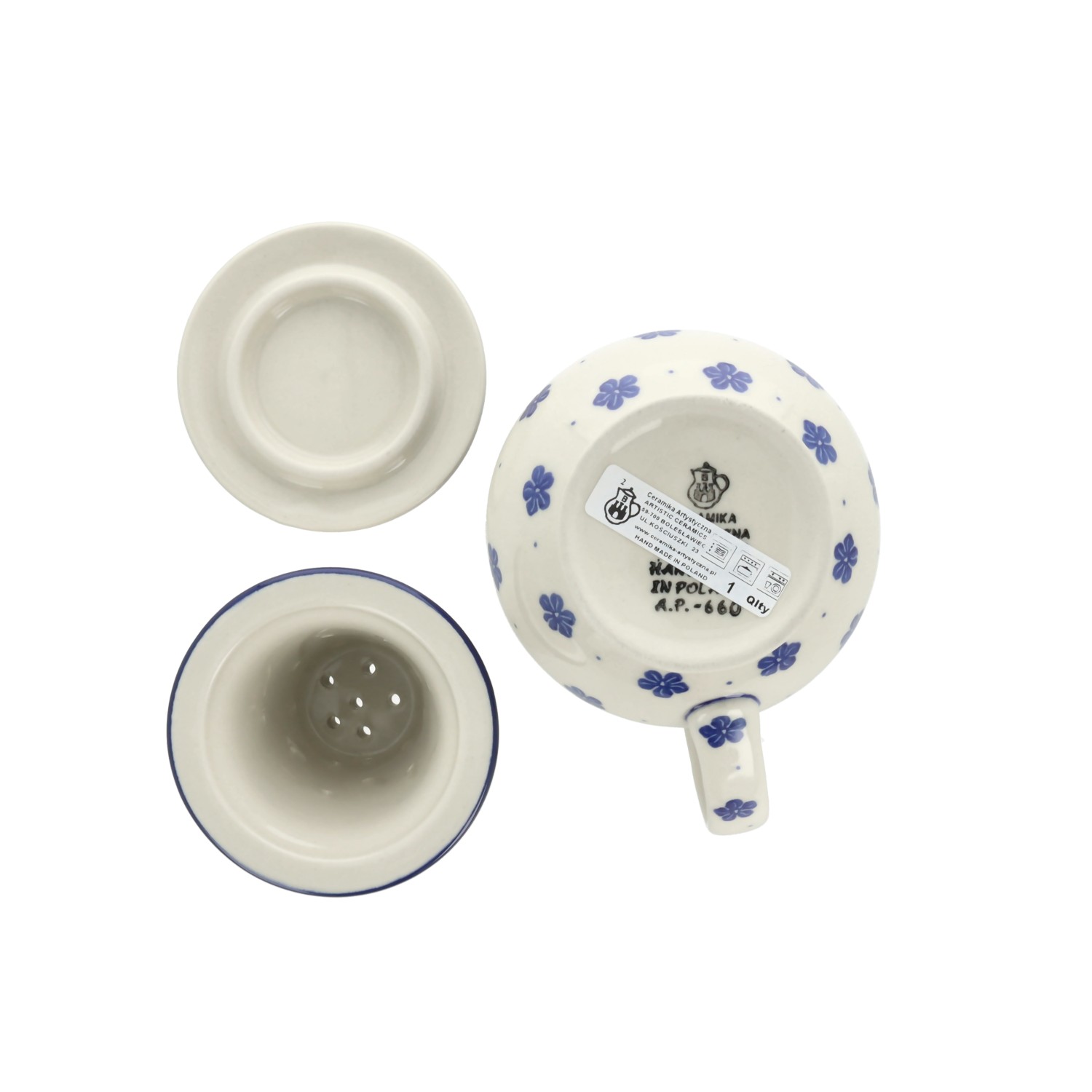 Kubek do ziół z sitkiem V 0,4 L Ceramika Artystyczna Bolesławiec C47 dek1975X