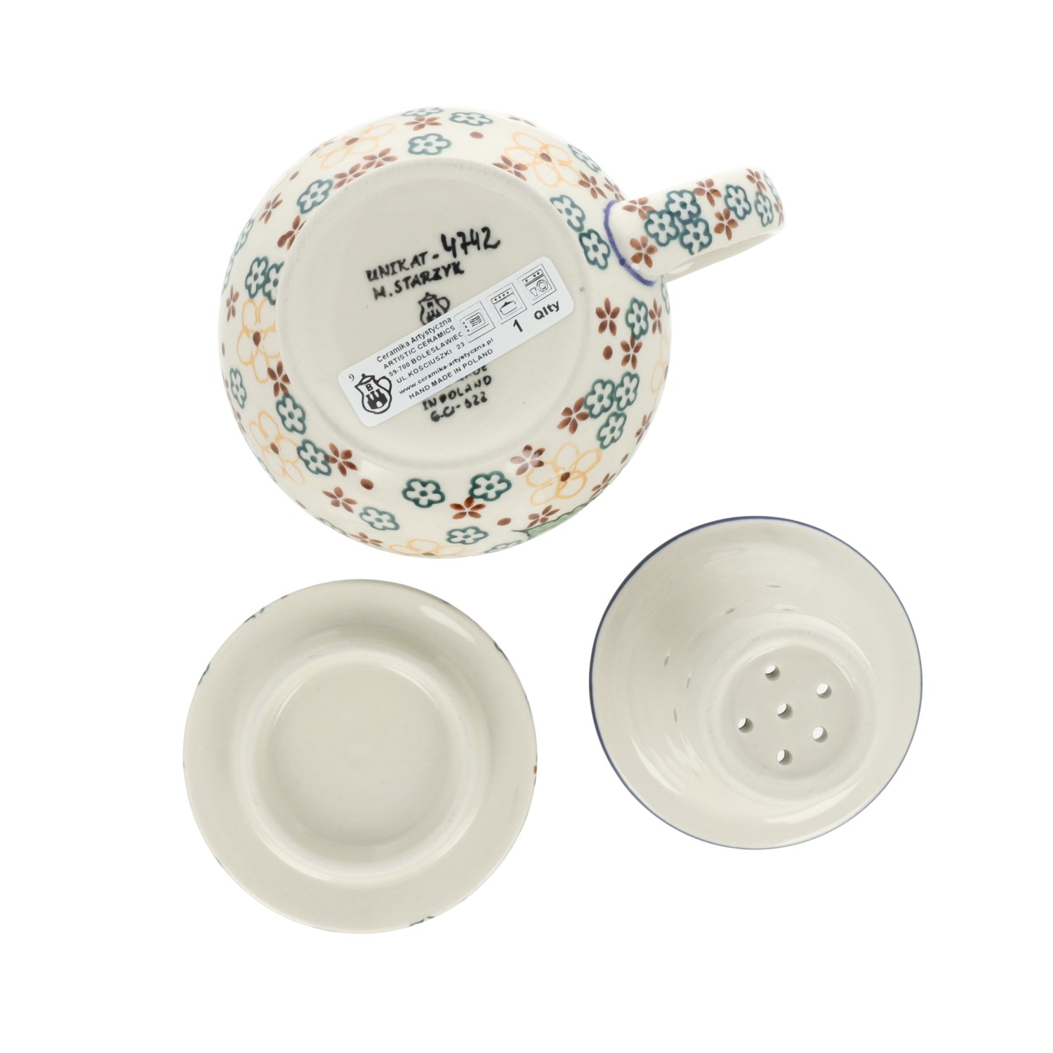 Czajnik Ceramika Artystyczna Bolesławiec do herbaty Sitko V 0,9 L E22 dekU4742