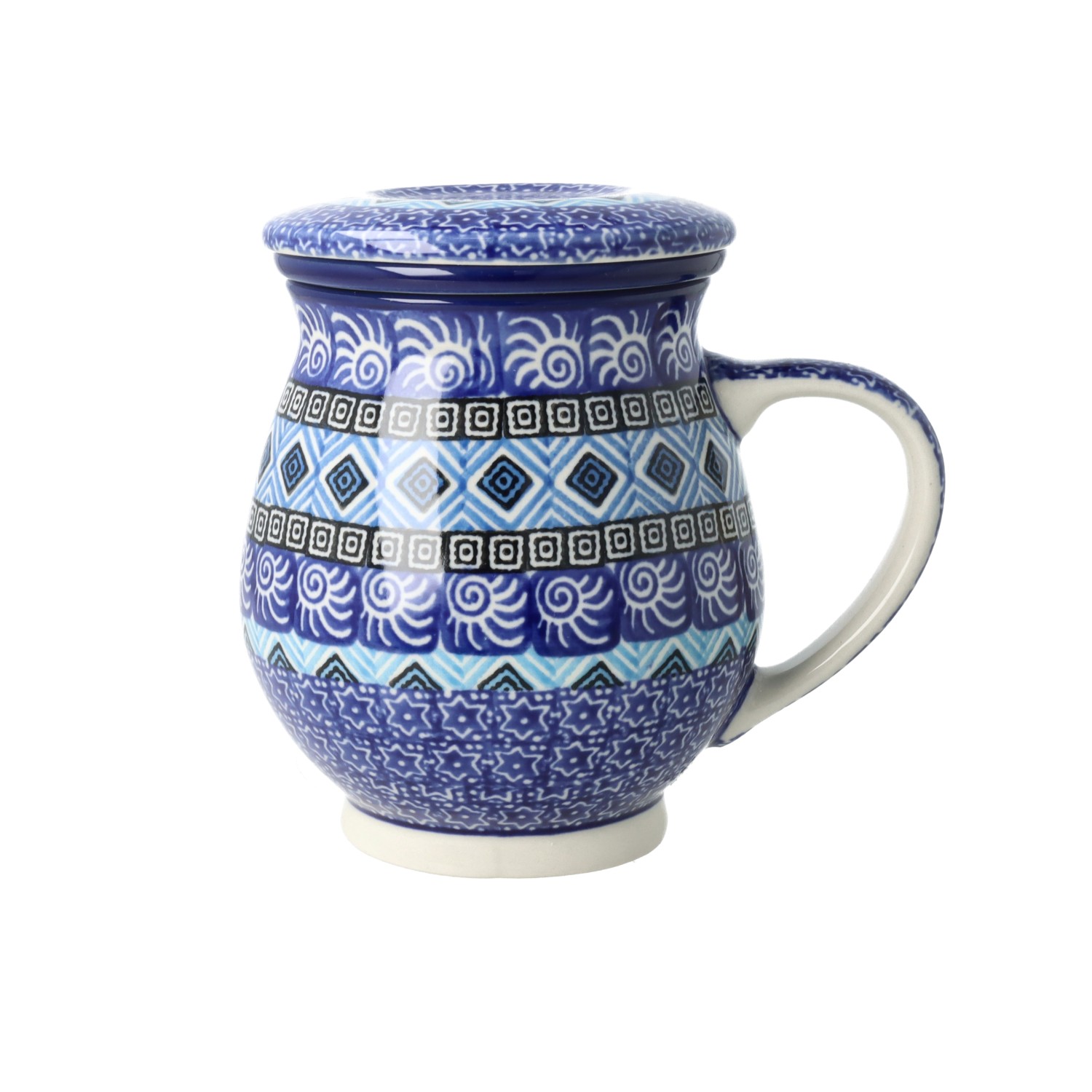 Kubek z uchem w klasycznym kształcie. Produkt ręcznie formowany i dekorowany w Zakładach Ceramicznych Bolesławiec.