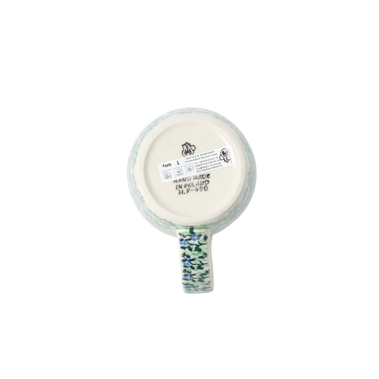 Kubek z uchem w klasycznym kształcie. Produkt ręcznie formowany i dekorowany w Zakładach Ceramicznych Bolesławiec.