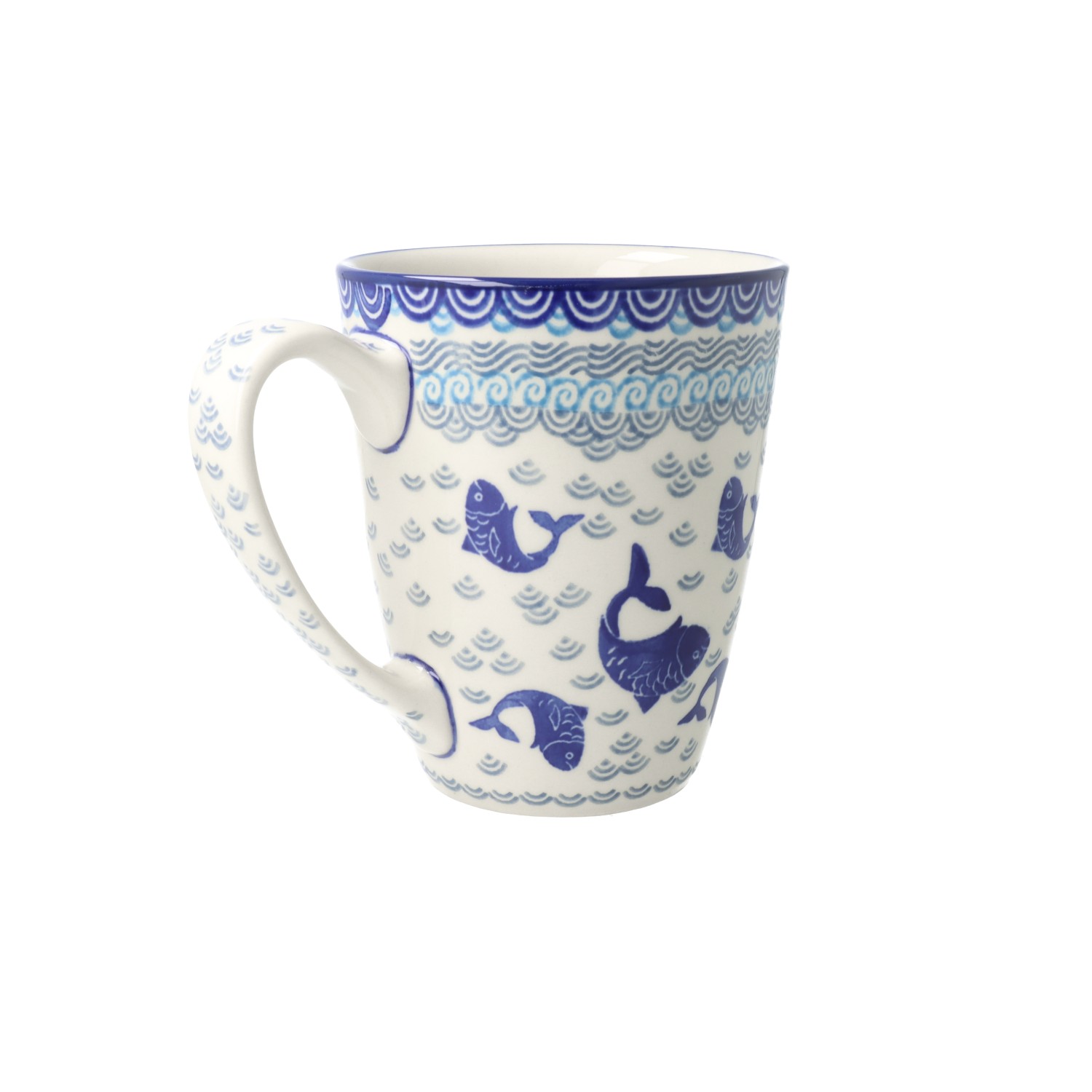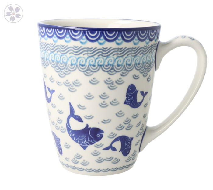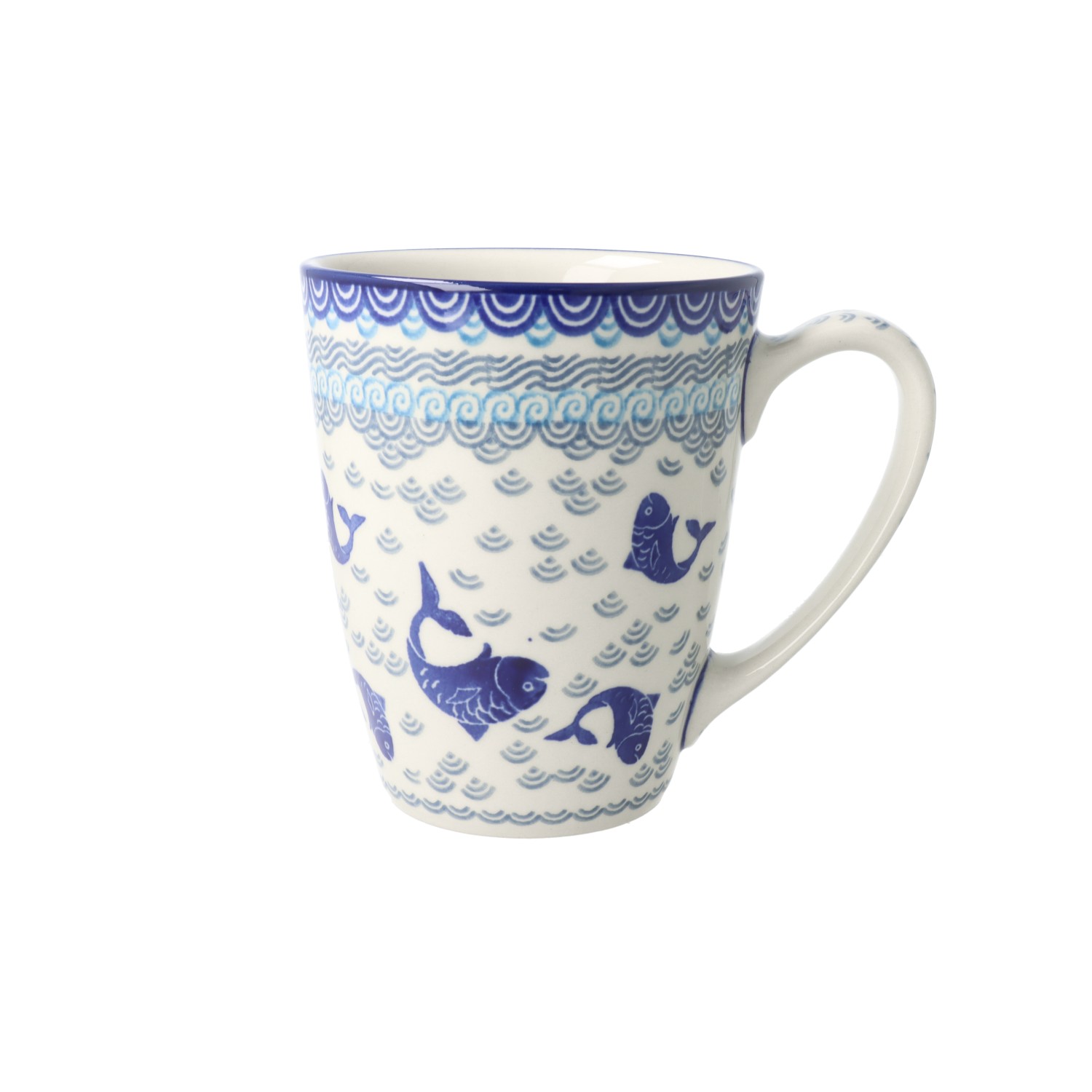 Kubek z uchem w klasycznym kształcie. Produkt ręcznie formowany i dekorowany w Zakładach Ceramicznych Bolesławiec.