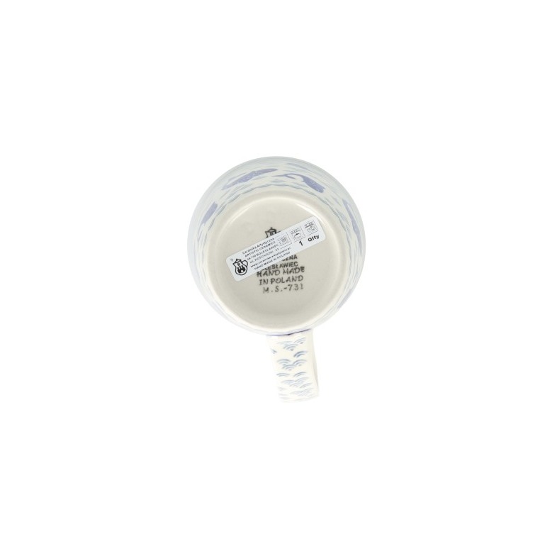 Kubek o pojemności 0,25 litra. Produkt ręcznie formowany i dekorowany w Manufakturze Galia Bolesławiec.