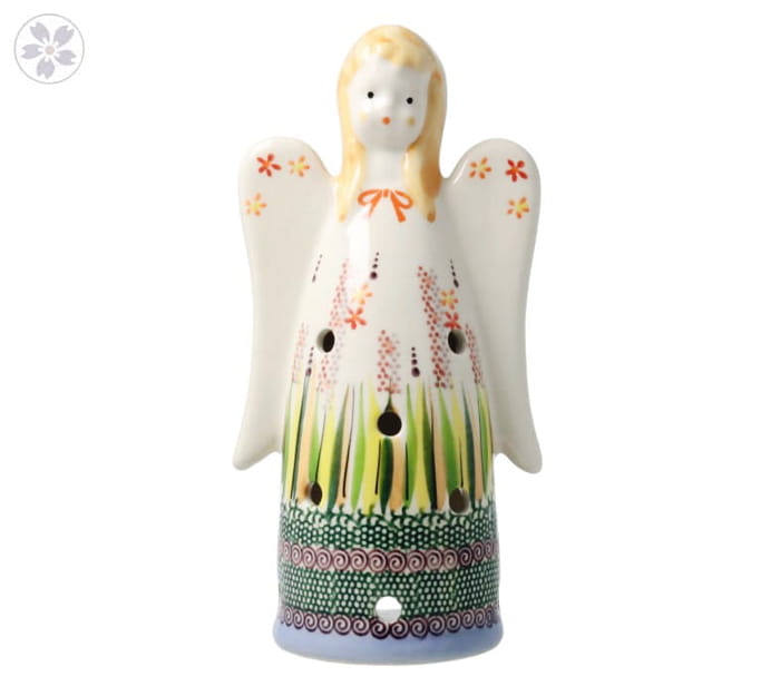 Lampion w kształcie anioła. Produkt ręcznie formowany i dekorowany w Manufakturze Galia Bolesławiec.
