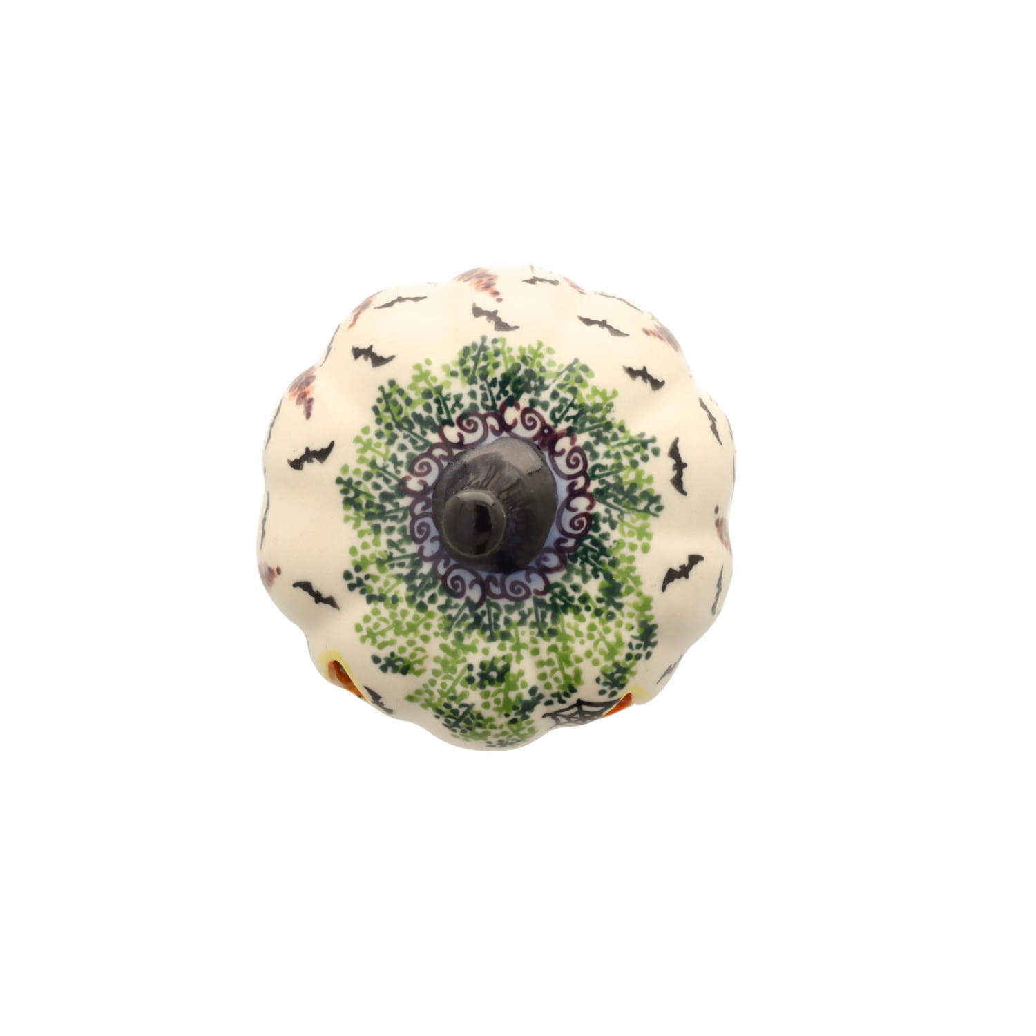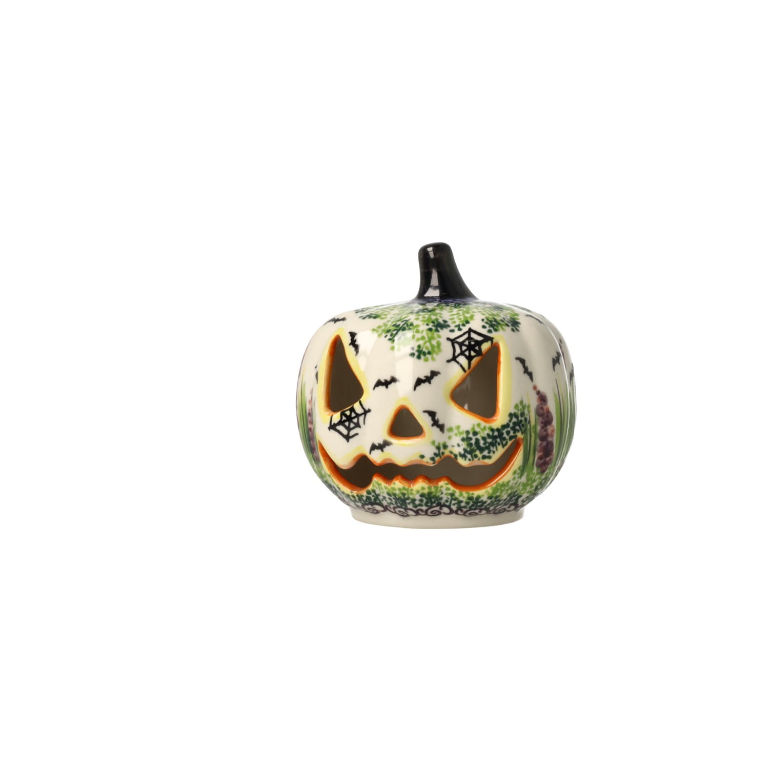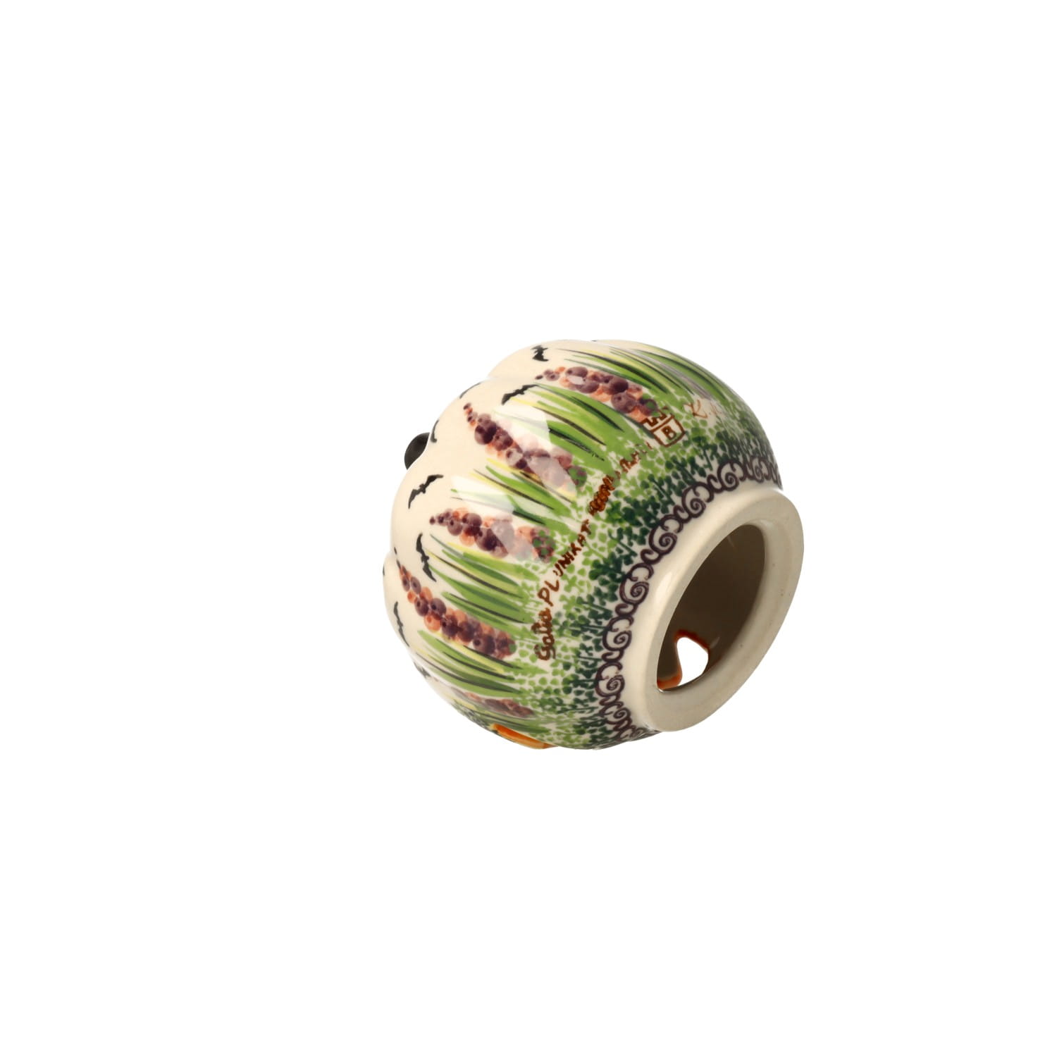 Lampion w kształcie dyni. Produkt ręcznie formowany i dekorowany w Manufakturze Galia Bolesławiec.