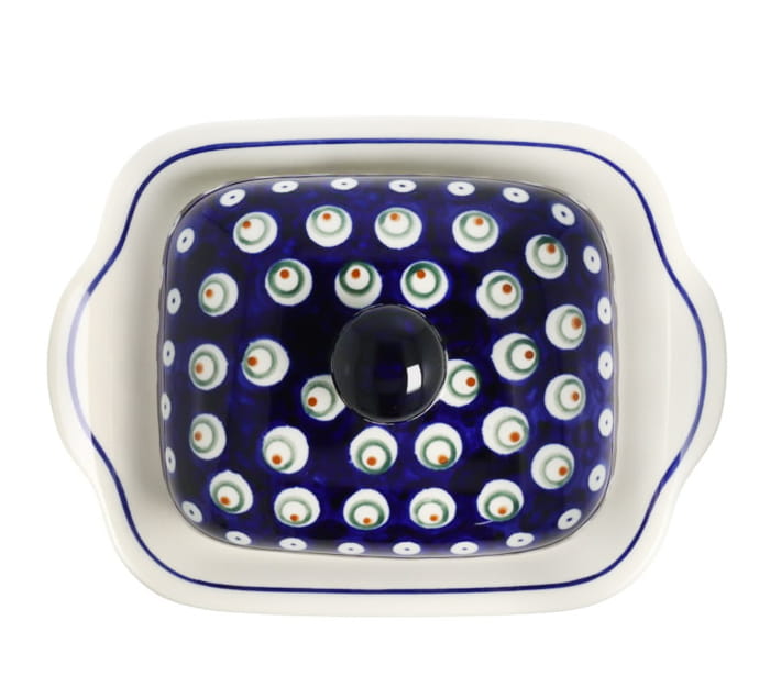 Maselnica z pokrywką, pomieści osełkę masła. Zabezpiecza je i inne produkty spożywcze przed wyschnięciem, przedłużając ich świeżość.