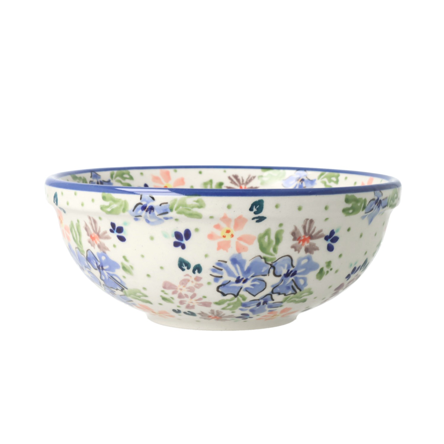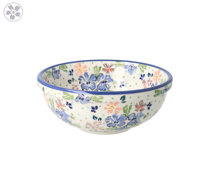 Mała, okrągła, miska z motywem kwiatów. Odpowiednia do podawania zup, płatków śniadaniowych oraz przekąsek.
