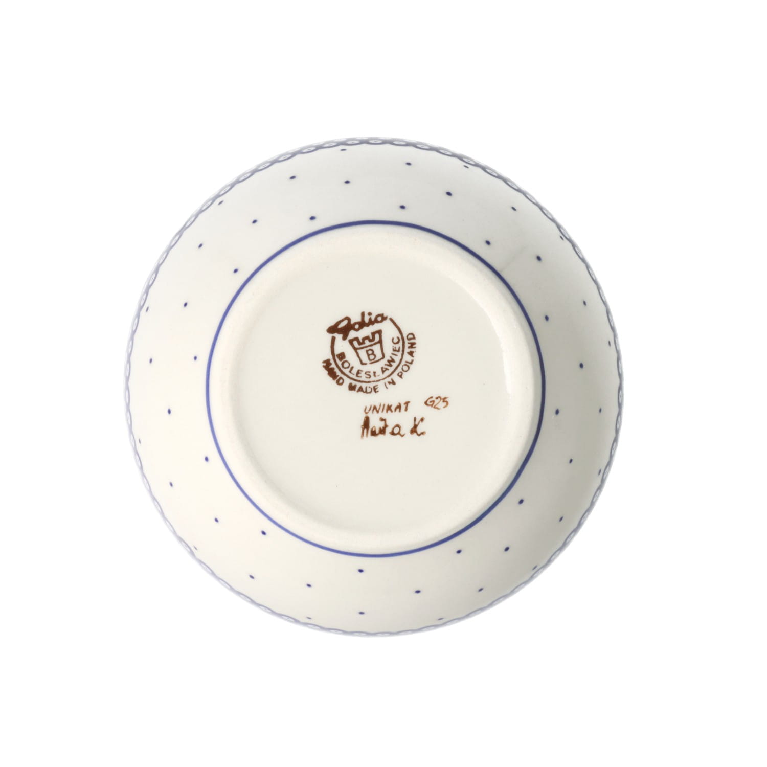 Produkt wykonany z glinki ceramicznej, ręcznie formowany i dekorowany w Manufakturze Galia Bolesławiec.