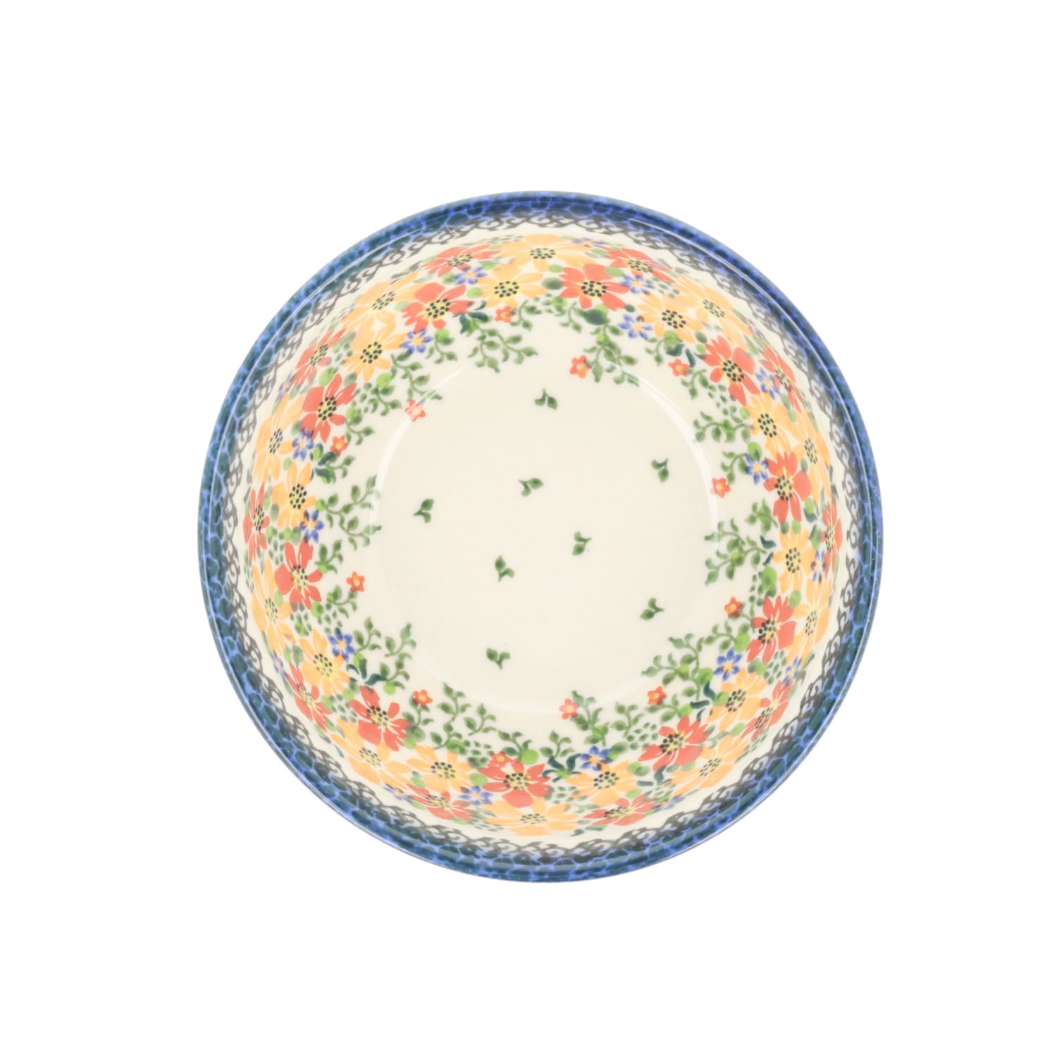 Naczynia w tym wzorze dekorowane są ręcznie, za pomocą stempli i pędzla.