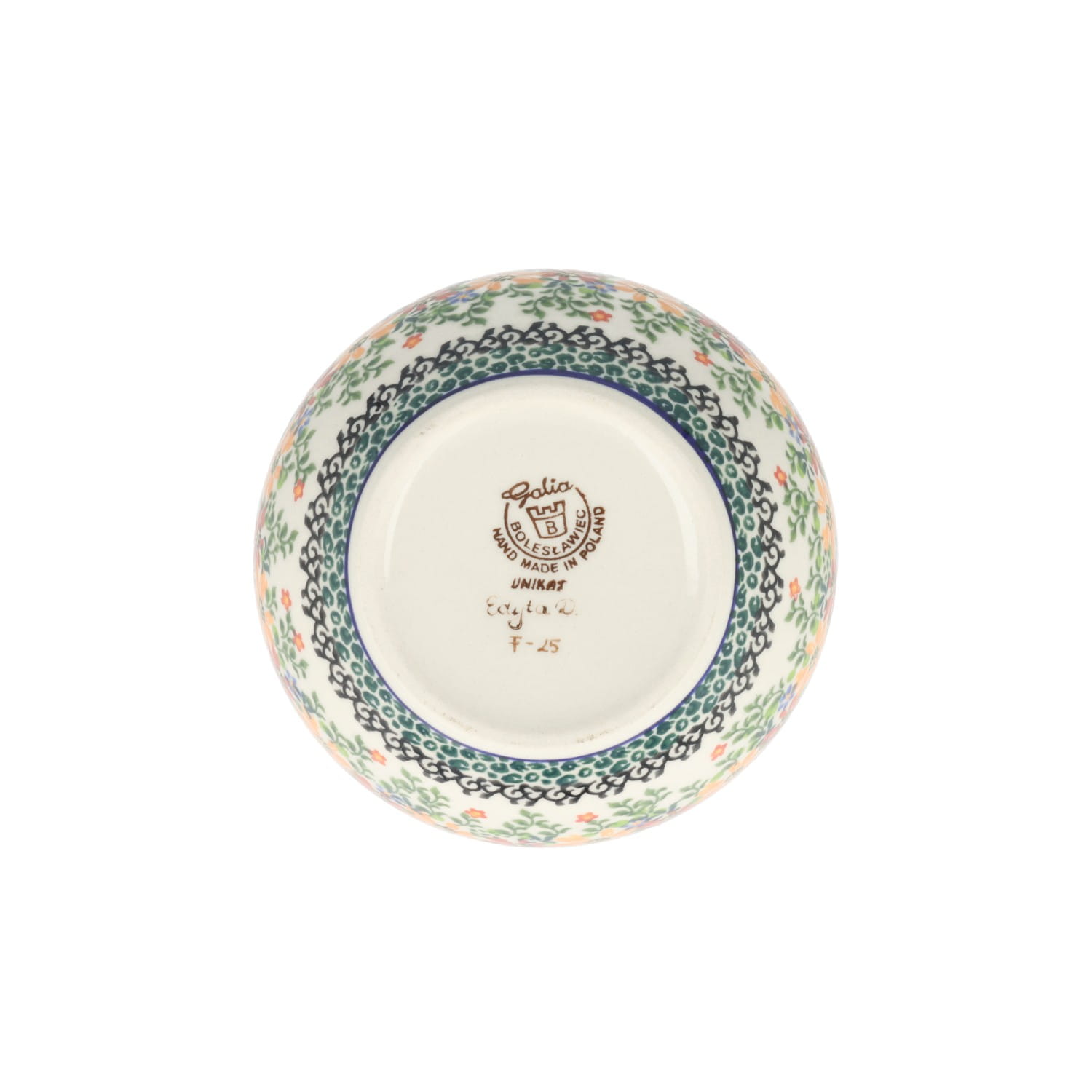 Produkt wykonany z glinki ceramicznej, ręcznie formowany i dekorowany w Manufakturze Galia Bolesławiec.