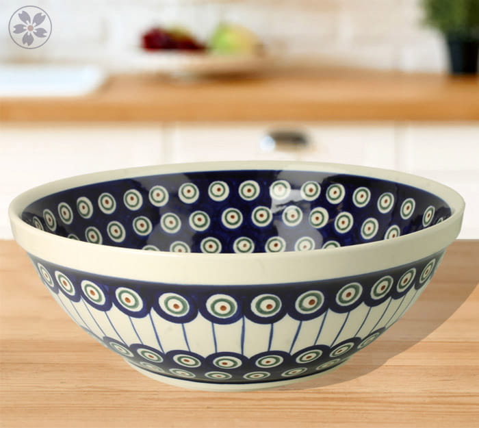 Duża, uniwersalna miska kuchenna. Produkt ręcznie formowany i dekorowany w Zakładach Ceramicznych Bolesławiec.