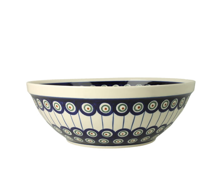 Duża, płaska miska kuchenna. Produkt ręcznie formowany i dekorowany w Zakładach Ceramicznych Bolesławiec.
