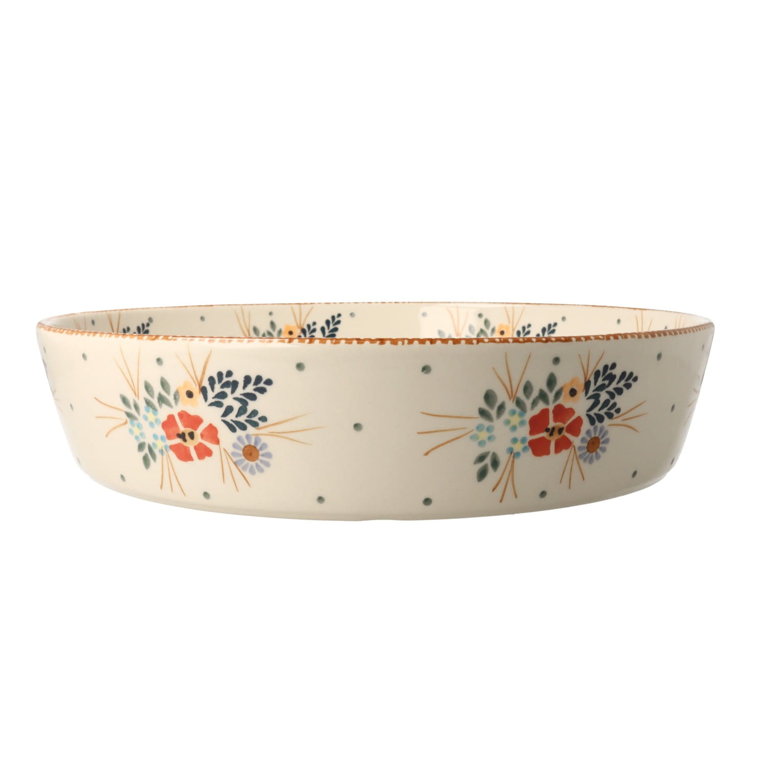 Duża, okrągła, miska z motywem kwiatowym. Odpowiednia do podawania sałatek lub przekąsek, owoców i warzyw a także gorących dań.