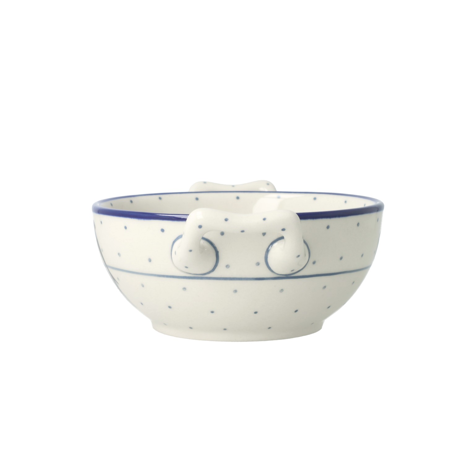Naczynia w tym wzorze dekorowane są ręcznie, za pomocą stempli i pędzla.