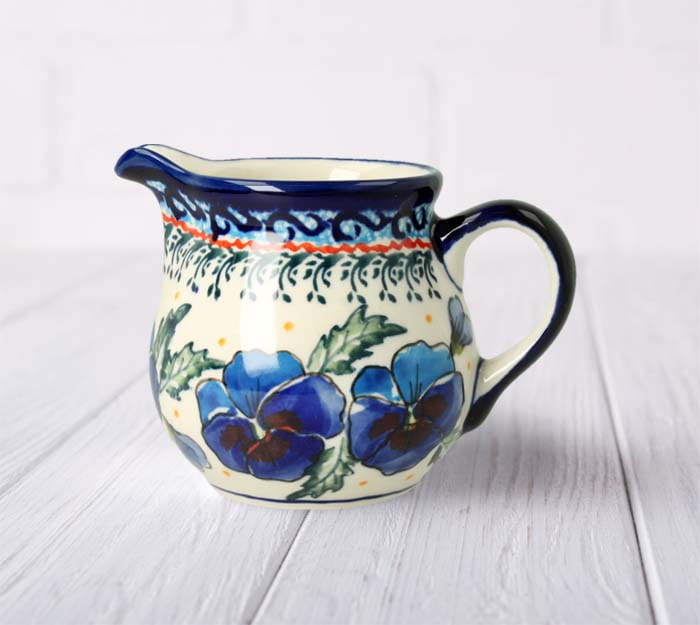 Pękaty mlecznik- dzbanuszek na mleko lub sok. Produkt ręcznie formowany i dekorowany w Zakładach Ceramicznych Bolesławiec.