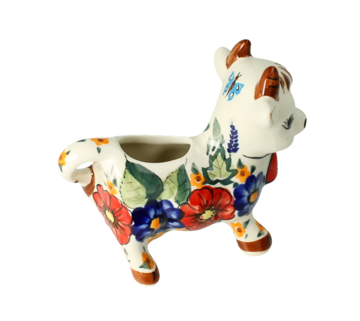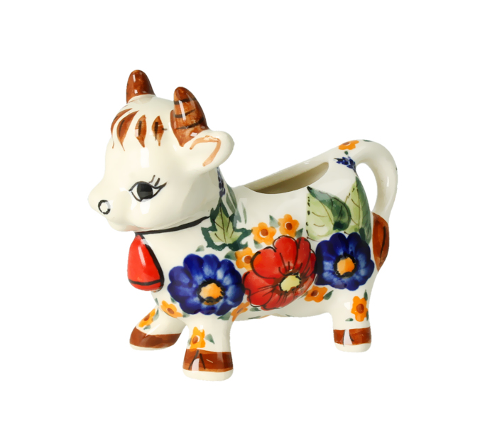 Mlecznik- dzbanuszek w kształcie krowy. Produkt ręcznie formowany i dekorowany w Zakładach Ceramicznych Bolesławiec.