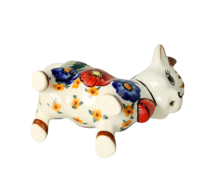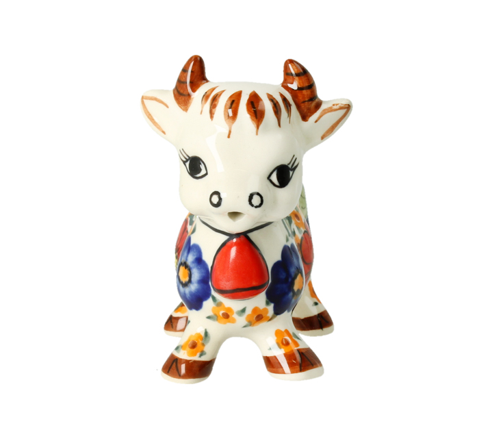 Mlecznik w kształcie krówki. Produkt ręcznie formowany i dekorowany w Zakładach Ceramicznych Bolesławiec.