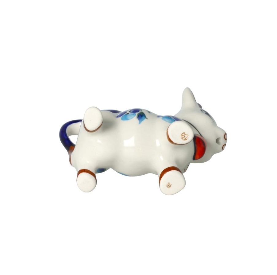 Uroczy mlecznik w kształcie krowy, z profilowanym dzióbkiem. Idealny do podania mleka do kawy lub soku do herbaty. Mimo nietypowego kształtu, jest bardzo wygodny w użyciu, ogonek mućki stanowi uchwyt, a pyszczek lejek.