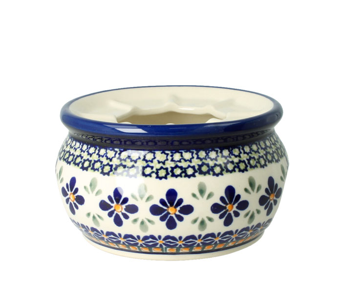Okrągły podgrzewać na świeczkę typu tealight. Produkt ręcznie formowany i dekorowany w Zakładach Ceramicznych Bolesławiec.