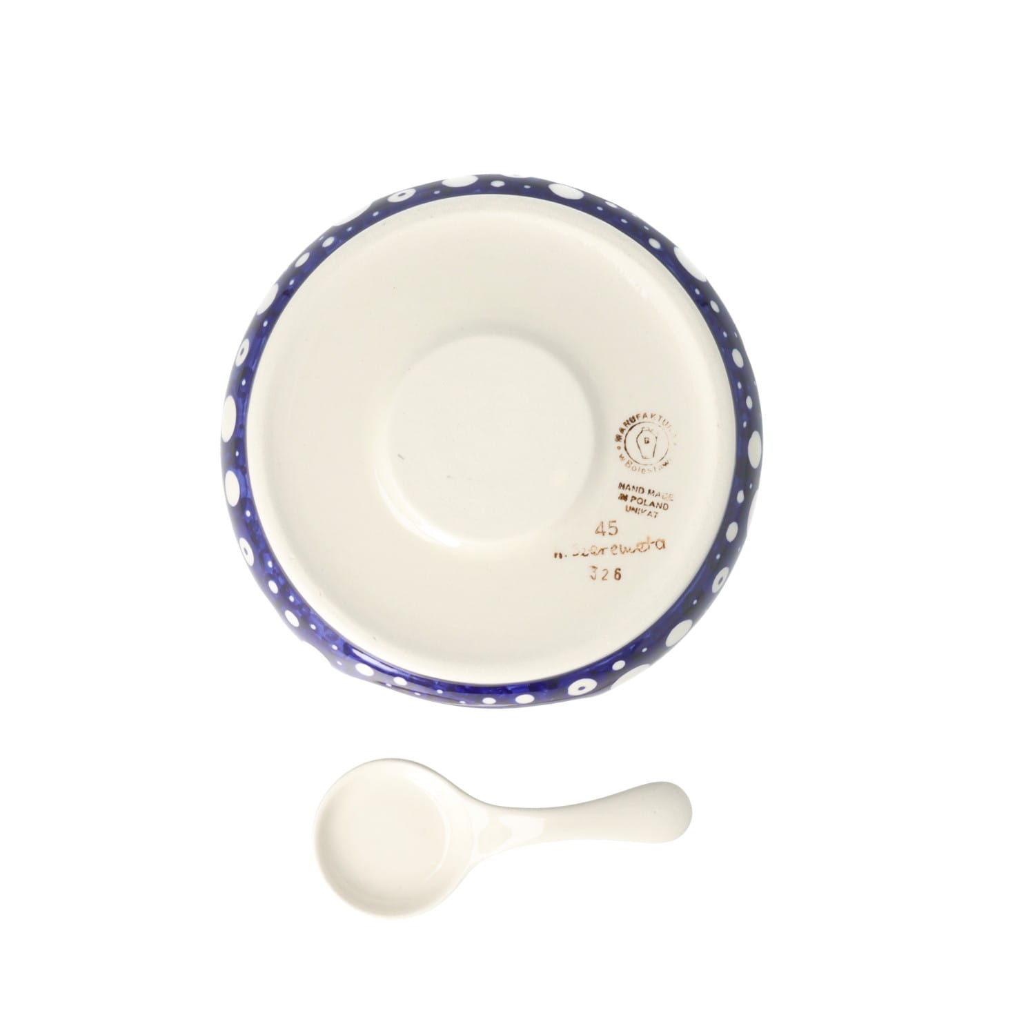 Produkt wykonany z glinki ceramicznej, ręcznie formowany i dekorowany w Manufakturze w Bolesławcu.