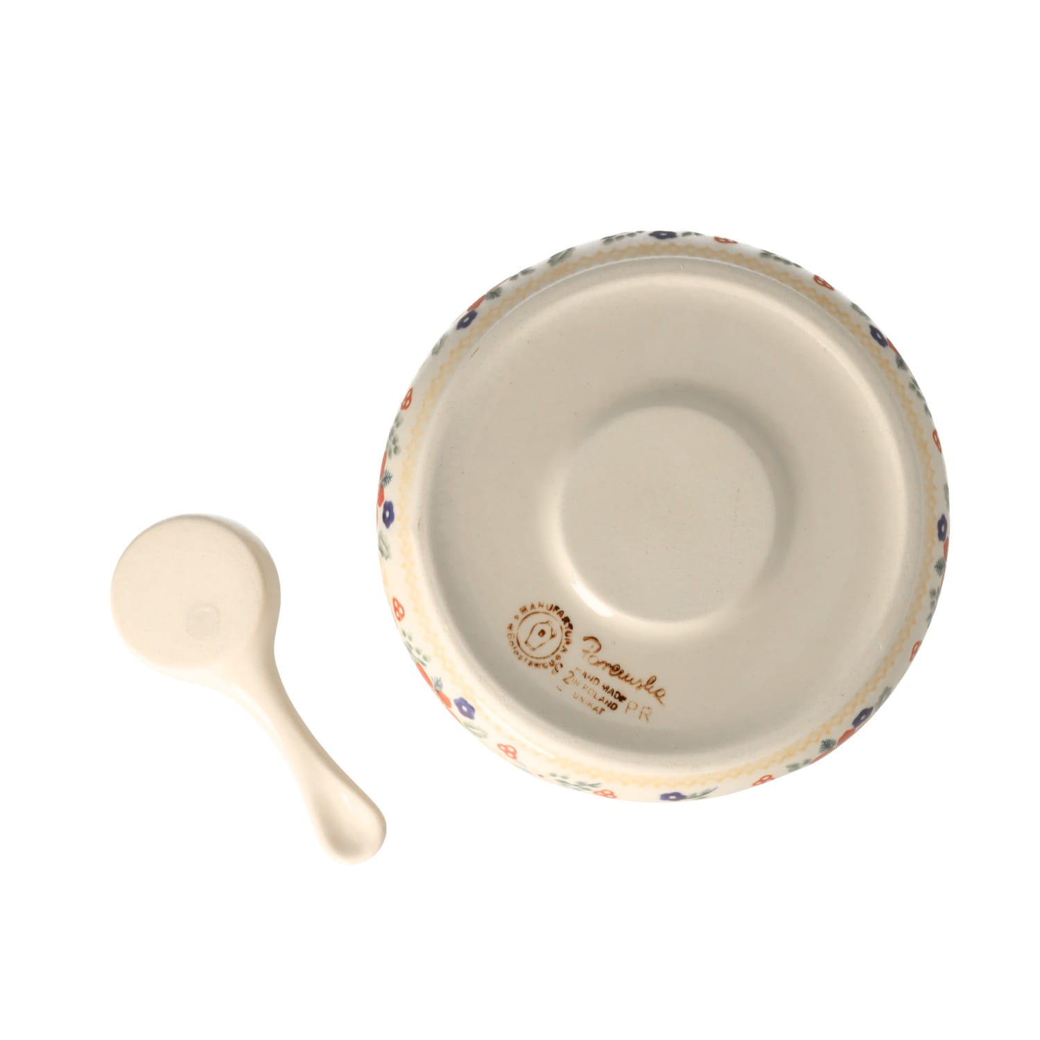 Produkt wykonany z glinki ceramicznej, ręcznie formowany i dekorowany w Manufakturze w Bolesławcu.
