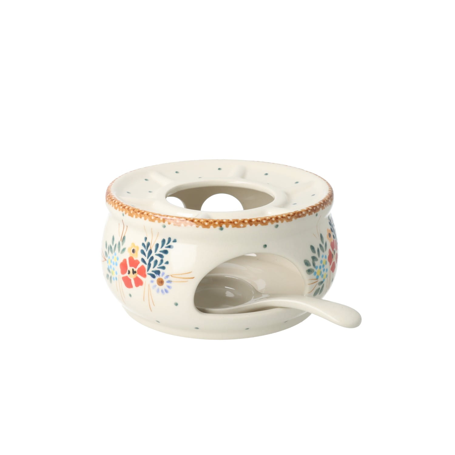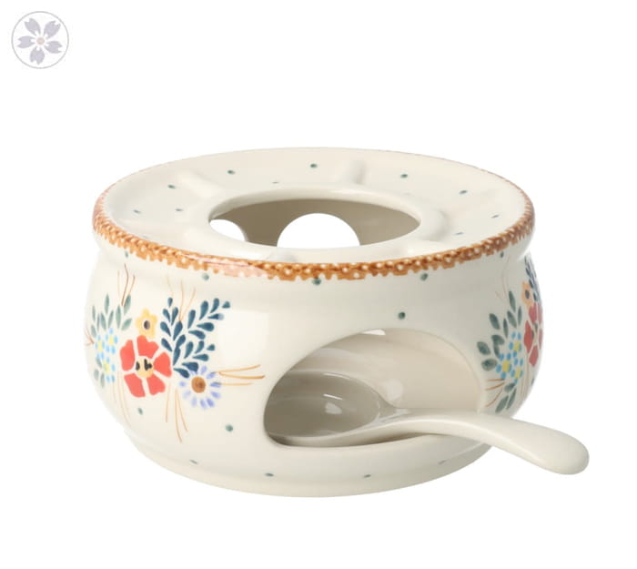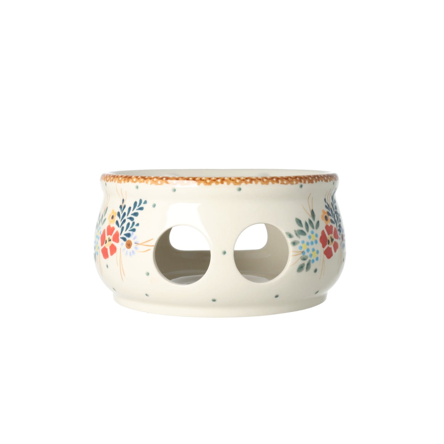 Okrągły podgrzewacz, we wnętrzu którego należy umieścić świeczkę typu tealight, dzięki czemu napój w czajniku dłużej zachowa temperaturę.