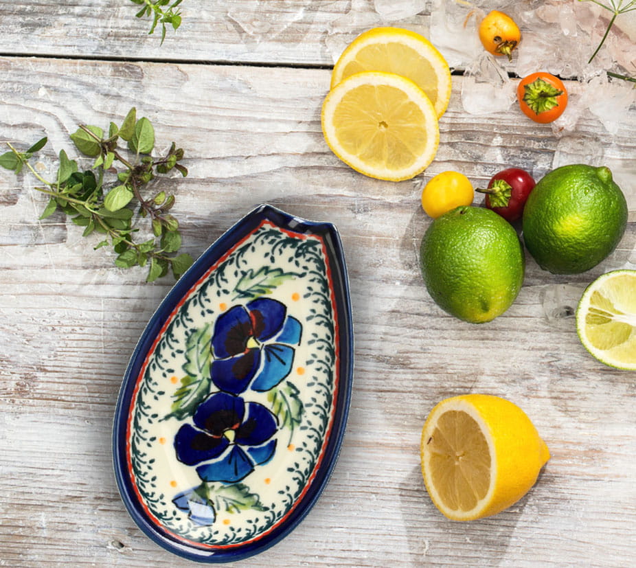 Podstawka pod łyżkę lub inne sztućce. Produkt ręcznie formowany i dekorowany w Zakładach Ceramicznych Bolesławiec.