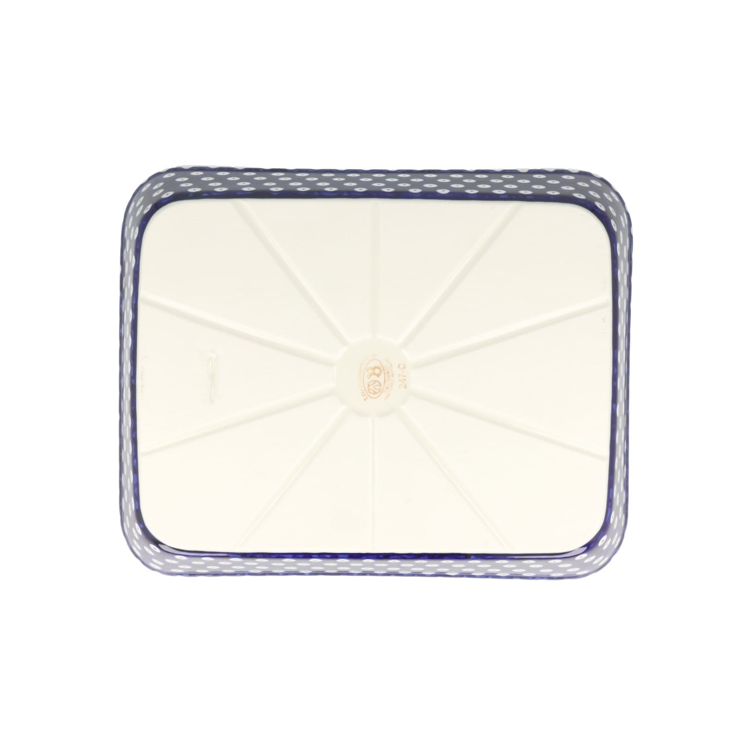 Prostokątna maselnica z uchwytami. Produkt ręcznie formowany i dekorowany w Zakładach Ceramicznych Bolesławiec.