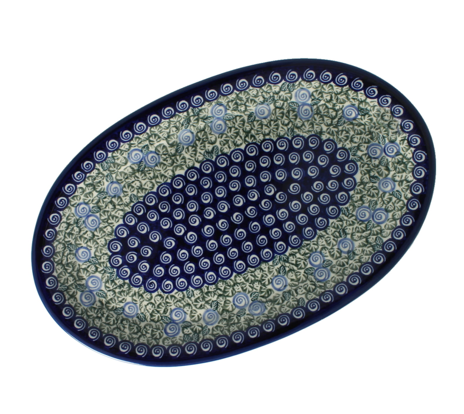 Owalny półmisek do podgrzewania potraw. Produkt ręcznie formowany i dekorowany w Zakładach Ceramicznych Bolesławiec.