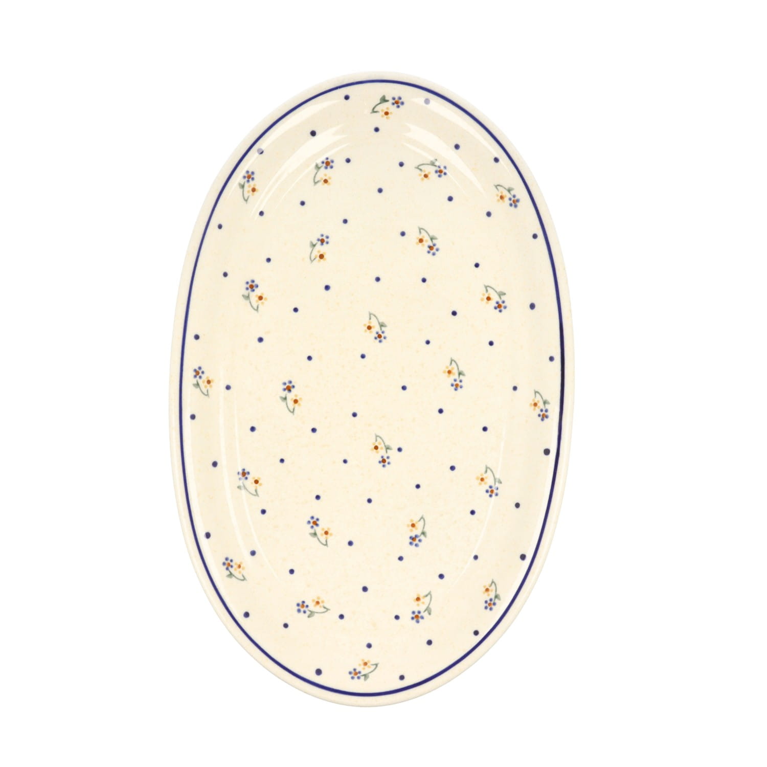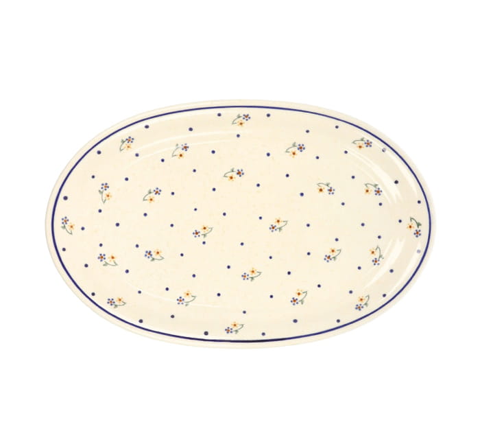 Podłużny półmisek do serwowania przystawek. Produkt ręcznie formowany i dekorowany w Zakładach Ceramicznych Bolesławiec.