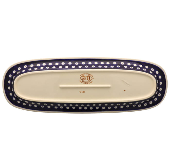Podłużny półmisek. Produkt ręcznie formowany i dekorowany w Zakładach Ceramicznych Bolesławiec.