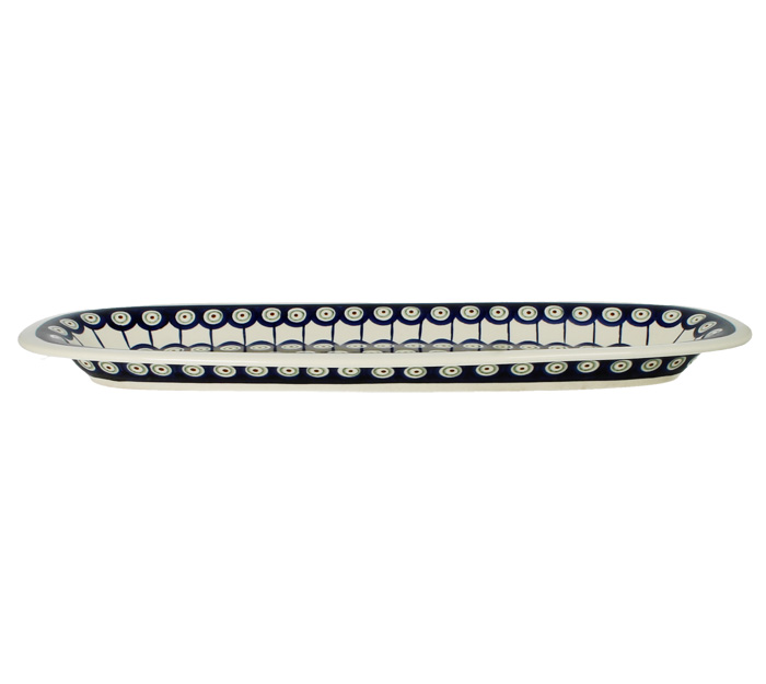 Podłużny, plaski, owalny półmisek. Produkt ręcznie formowany i dekorowany w Zakładach Ceramicznych Bolesławiec.