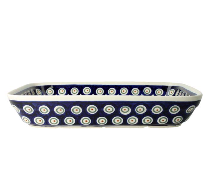 Prostokątny półmisek do zapiekania i podgrzewania. Produkt ręcznie formowany i dekorowany w Zakładach Ceramicznych Bolesławiec.