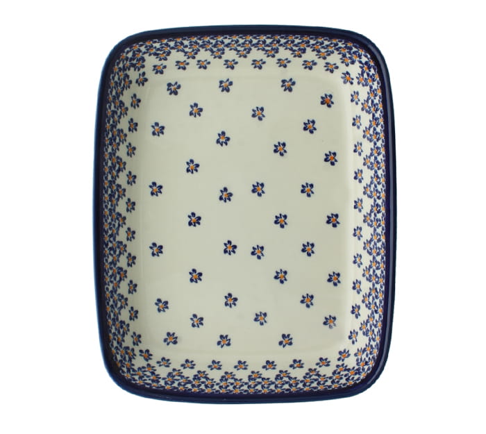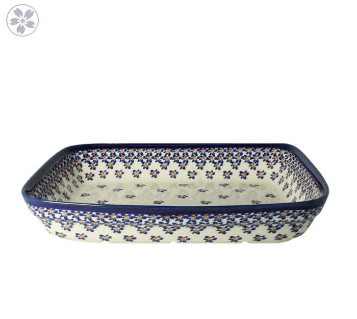 Prostokątny półmisek do zapiekania potraw. Produkt ręcznie formowany i dekorowany w Zakładach Ceramicznych Bolesławiec.