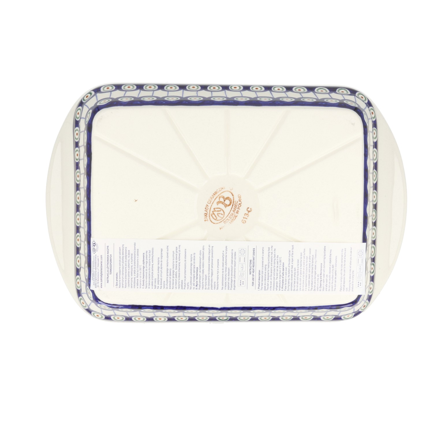 Prostokątny półmisek do zapiekania. Produkt ręcznie formowany i dekorowany w Zakładach Ceramicznych Bolesławiec.