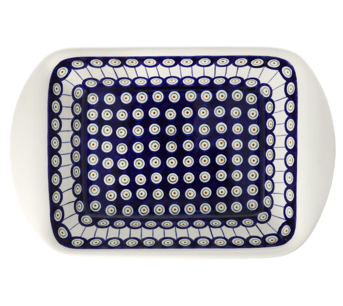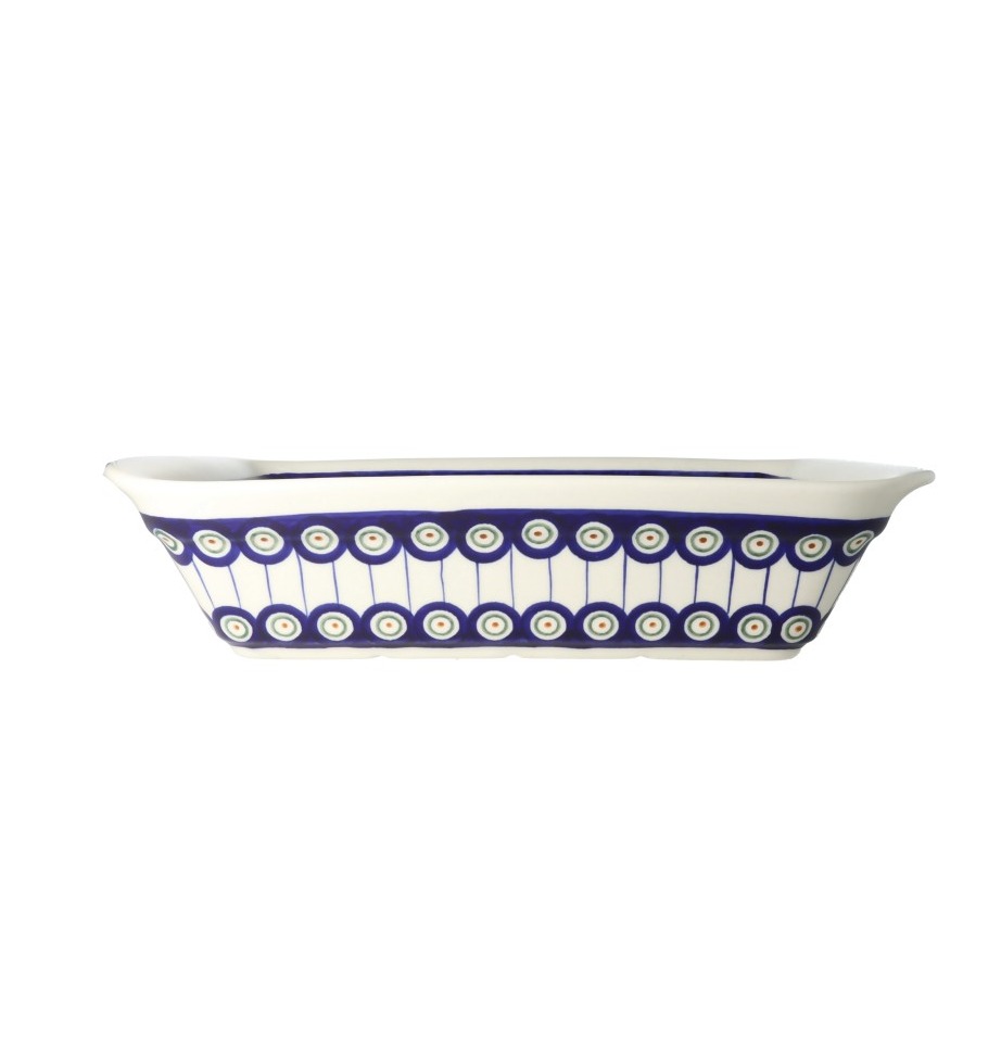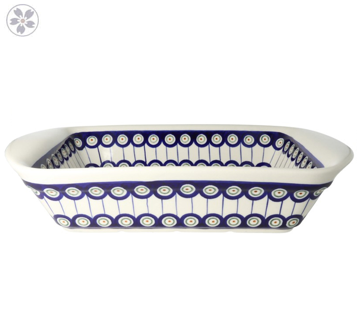 Prostokątny półmisek do zapiekania i podgrzewania. Produkt ręcznie formowany i dekorowany w Zakładach Ceramicznych Bolesławiec.