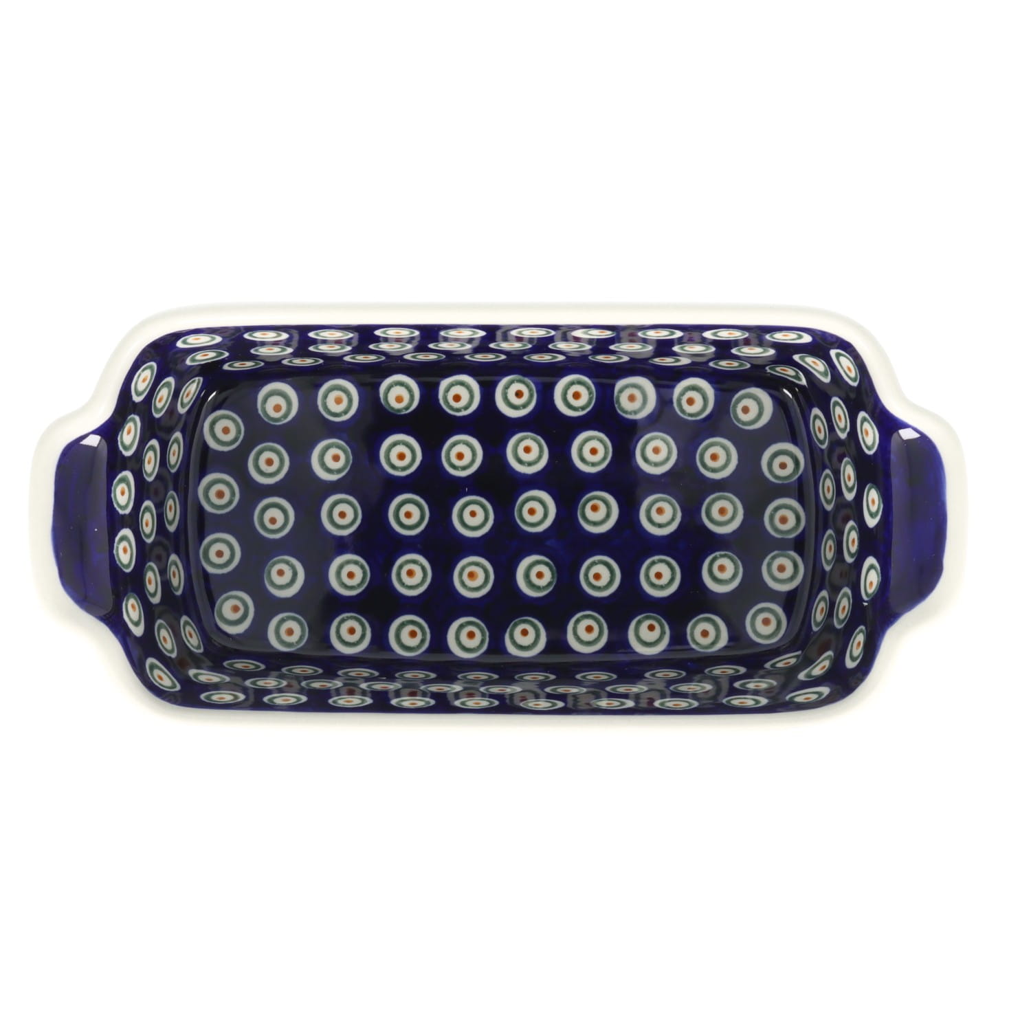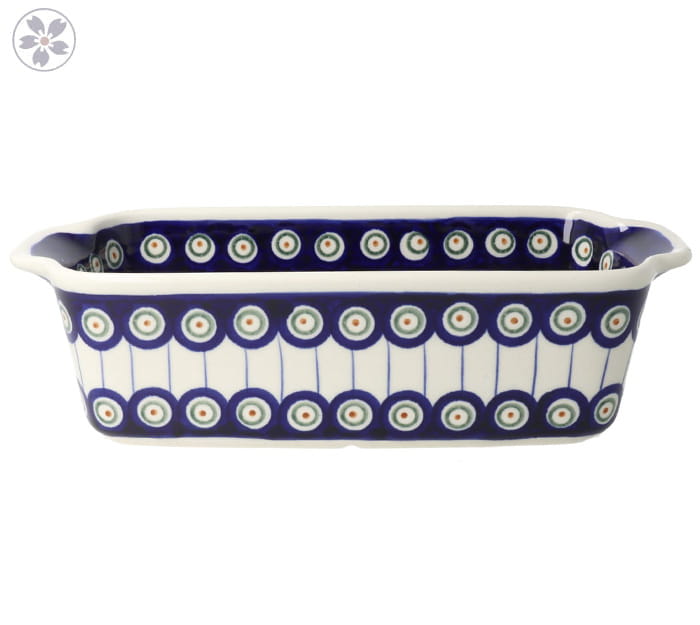 Prostokątny półmisek do zapiekania i podgrzewania. Produkt ręcznie formowany i dekorowany w Zakładach Ceramicznych Bolesławiec.