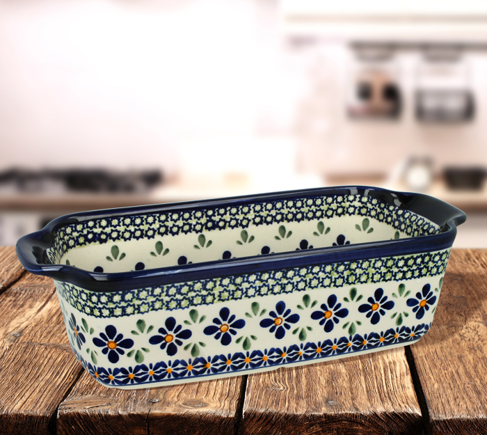 Podłużna forma do pieczenia. Produkt ręcznie formowany i dekorowany w Zakładach Ceramicznych Bolesławiec.