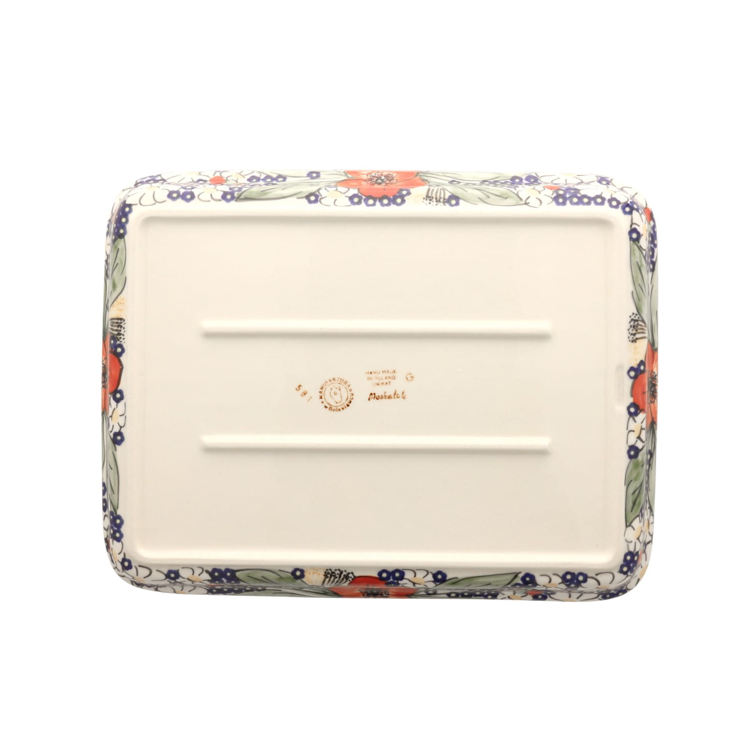 Produkt wykonany z glinki ceramicznej, ręcznie formowany i dekorowany w Manufakturze w Bolesławcu.