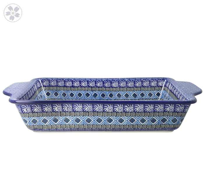 Prostokątna forma z uchwytami. Sprawdzi się jako uniwersalne naczynie do ciast, makaronów, zapiekanek i innych dań na gorąco.