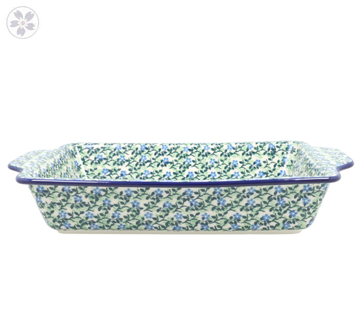 Prostokątna forma z uchwytami. Sprawdzi się jako uniwersalne naczynie do ciast, makaronów, zapiekanek i innych dań na gorąco.