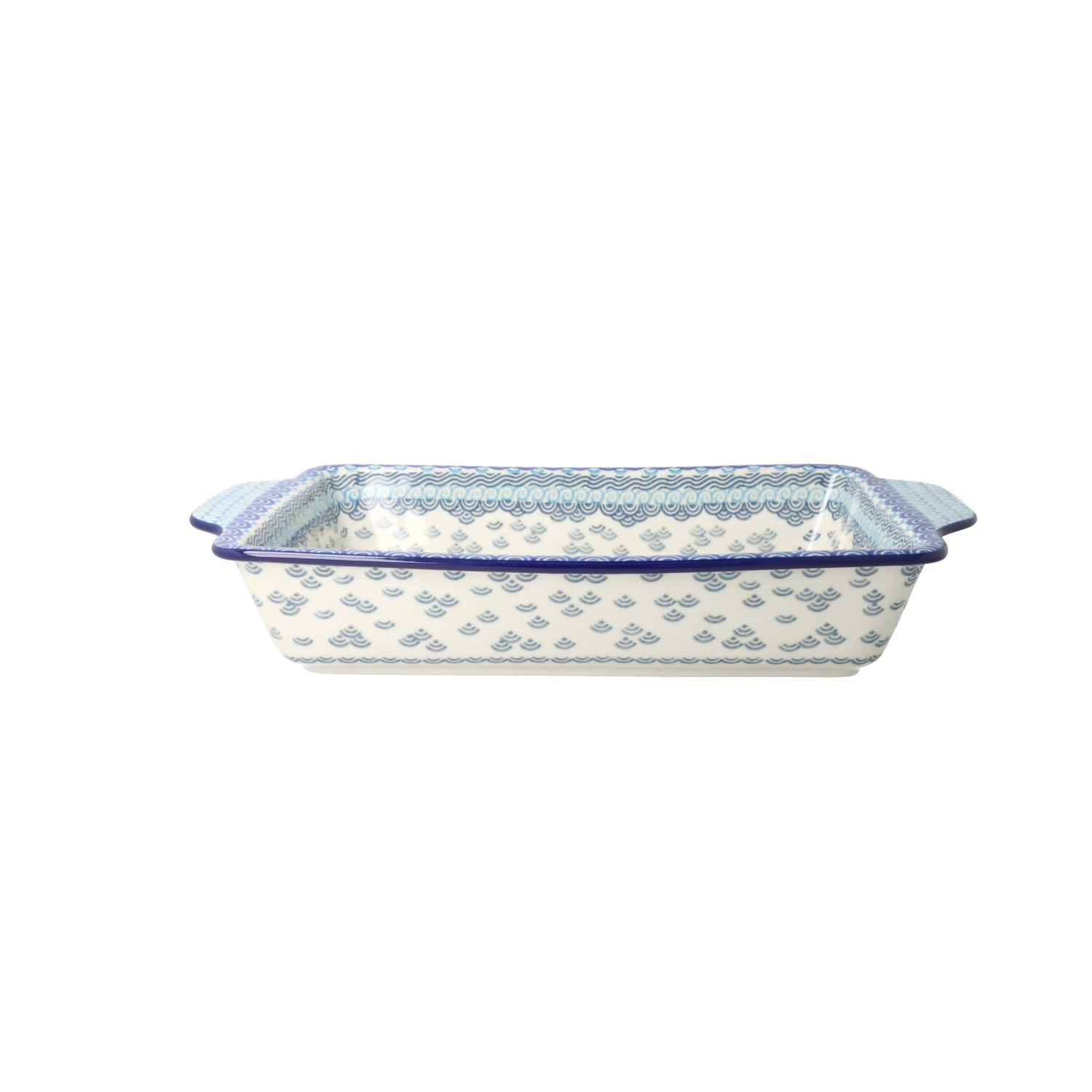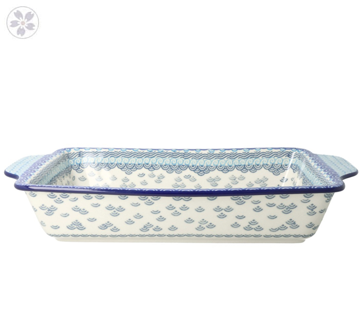 Prostokątna forma z uchwytami. Sprawdzi się jako uniwersalne naczynie do ciast, makaronów, zapiekanek i innych dań na gorąco.