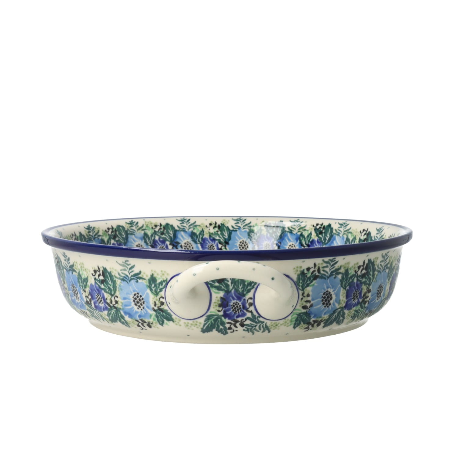 Prostokątna forma do pieczenia z uchwytami. Produkt ręcznie formowany i dekorowany w Ceramice Artystycznej S.R.A. Bolesławiec.