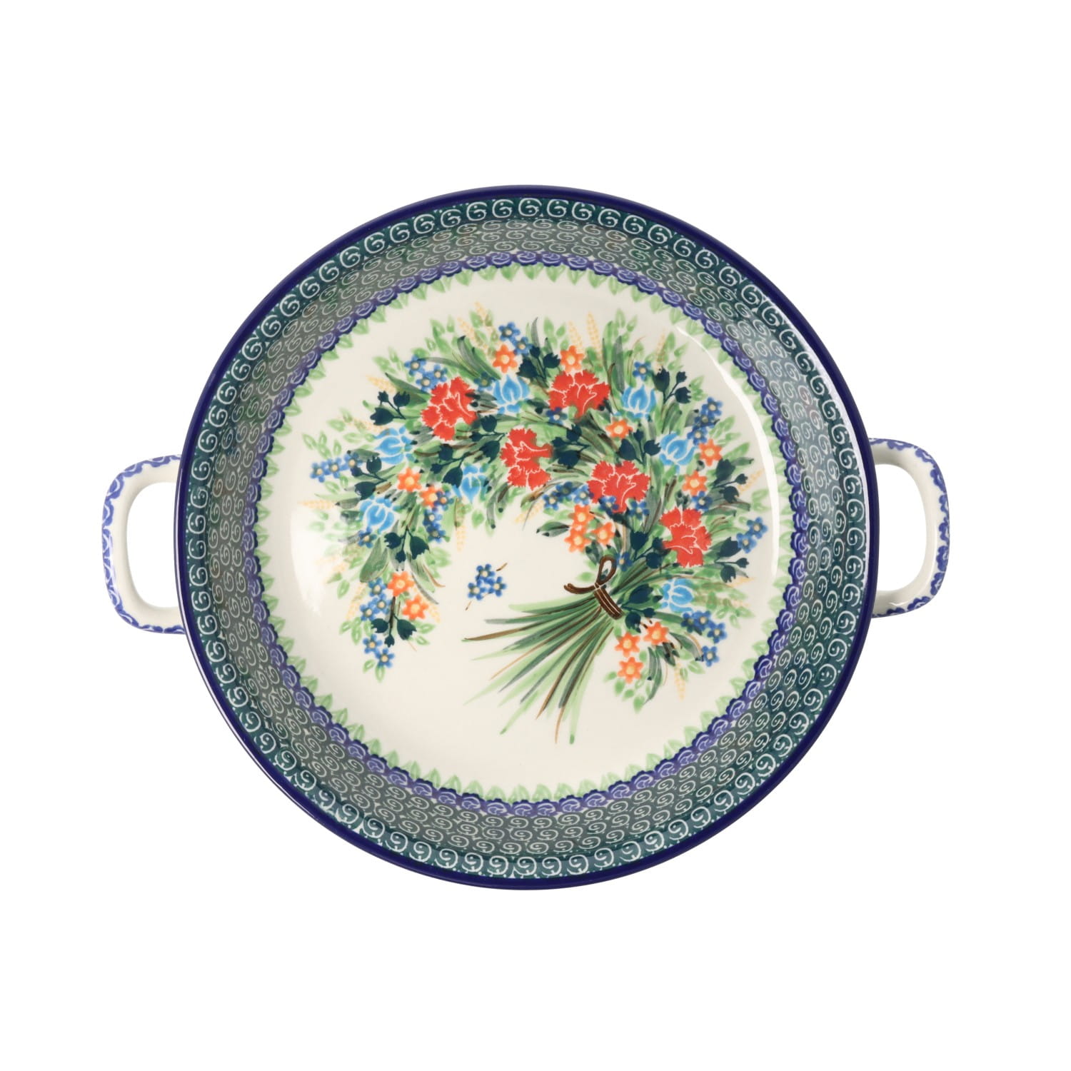 Okrągła forma z uchwytami. Sprawdzi się jako uniwersalne naczynie ciast, makaronów czy tart.