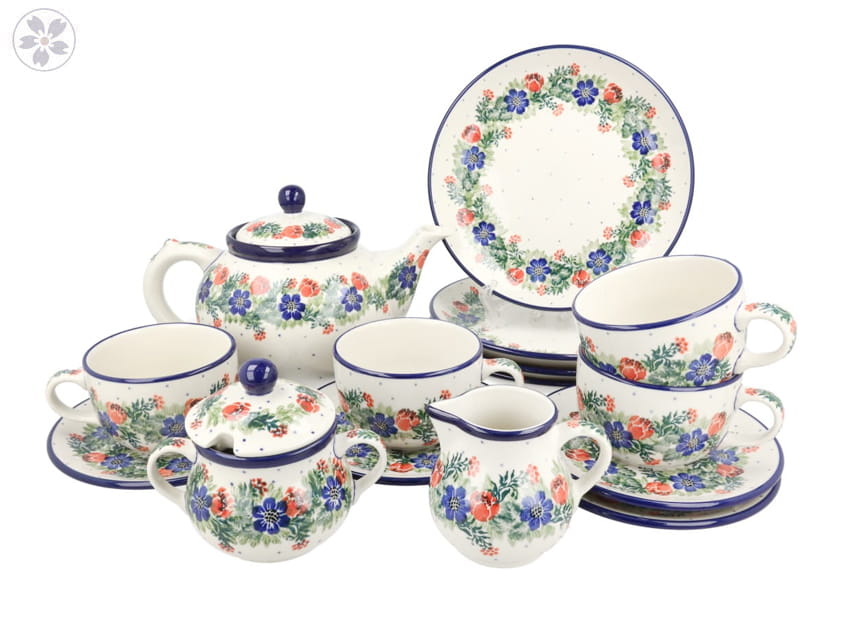 Serwis kawowo herbaciany dla 4 osób Ceramika Artystyczna Bolesławiec dek1535X