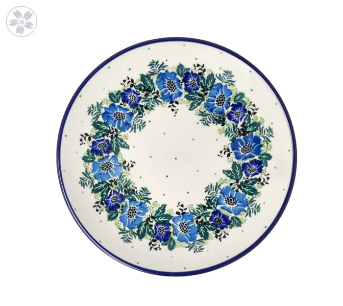 Płaski talerz deserowy. Produkt ręcznie formowany i dekorowany w Ceramice Artystycznej S.R.A. Bolesławiec.