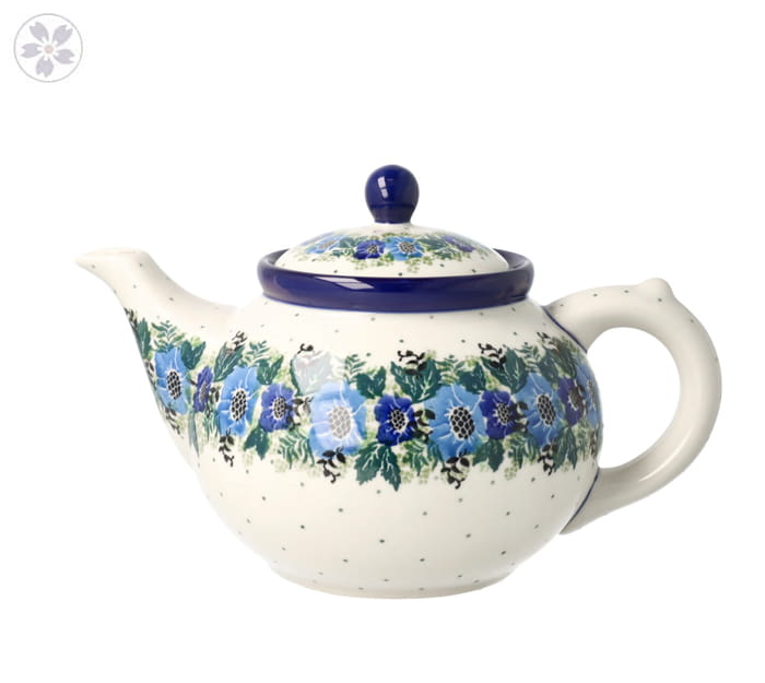 Czajnik z wbudowanym sitkiem i możliwością podgrzewania. Produkt ręcznie formowany i dekorowany w Zakładach Ceramicznych Bolesławiec.