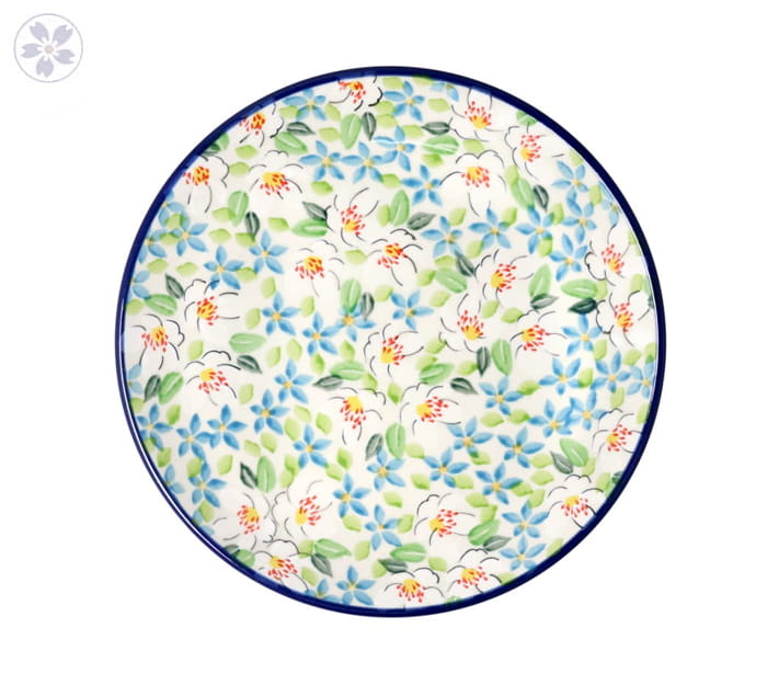 Naczynia w tym wzorze dekorowane są ręcznie, za pomocą stempli i pędzla.