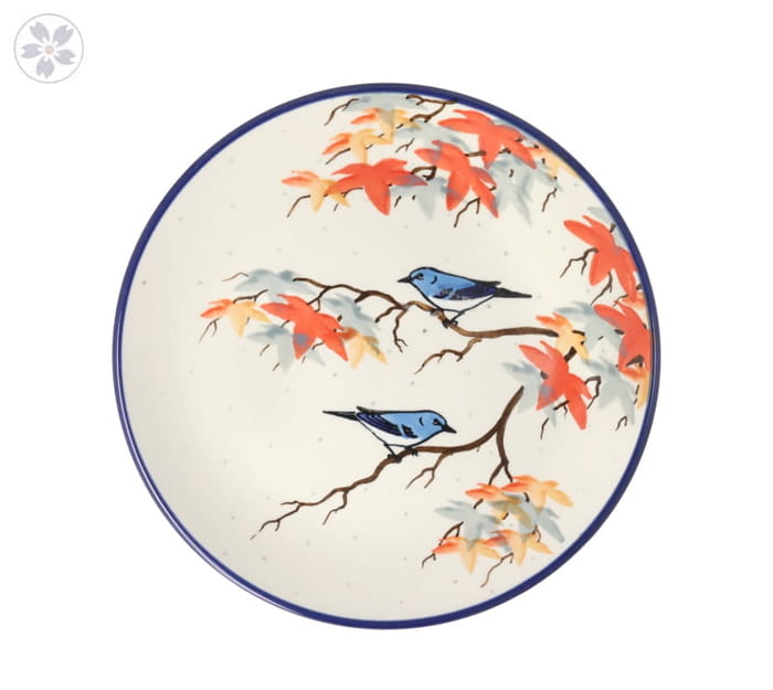 Naczynia w tym wzorze dekorowane są ręcznie, za pomocą stempli i pędzla.