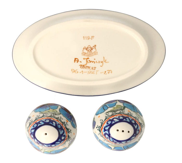 Naczynia w tym wzorze dekorowane są ręcznie, za pomocą stempli i pędzla, są podpisane przez artystę.