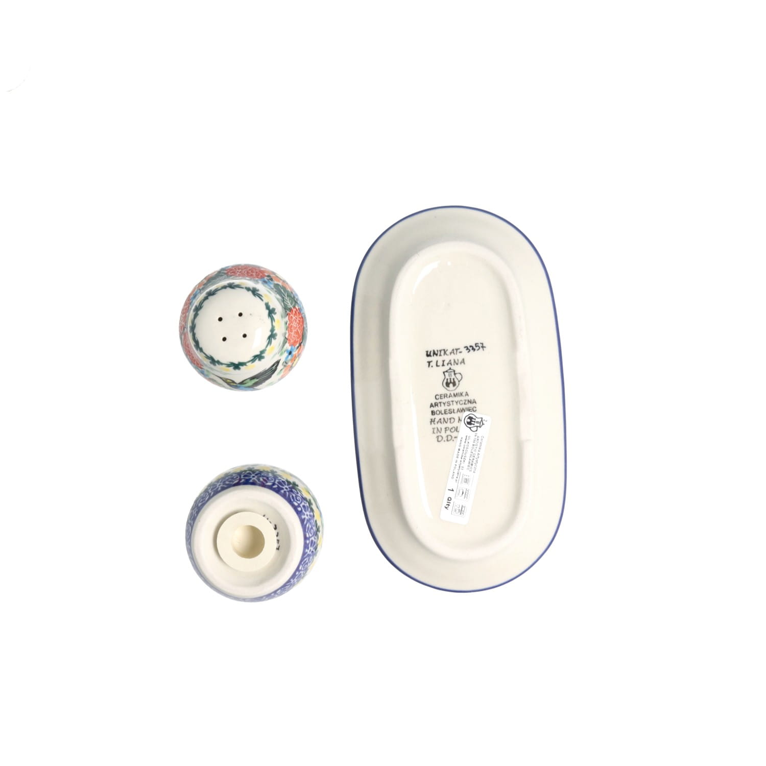 Solniczka i pieprzniczka Ceramika Artystyczna Bolesławiec komplet S131 dekU3357